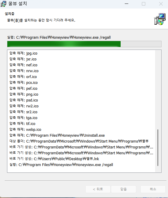 설치가 완료되면 마침 버튼을 클릭하여 꿀뷰 실행을 완료합니다.